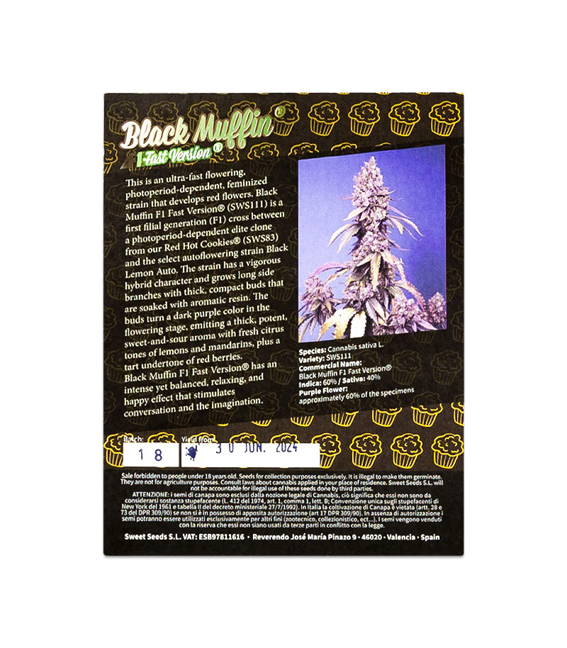 Семена сорта Black Muffin F1 Fast Version fem (Sweet Seeds) Испания, Феминизированные, Фотопериодные, ТГК-17 - 25