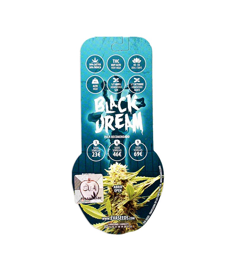 Семена конопли Black Dream были получены испанцами из Eva Seeds в результате скрещивания популярной сативы Jamaican Dream с мощной индикой Black Domina. Растение получилось поистине выдающимся. В 2016 году оно завоевало первый приз в рамках Copa Cata de la Montana в категории «Аутдор», а двумя годами позже было удостоено второго приза в категории «BHO» на Copa Cannaval 2018.
