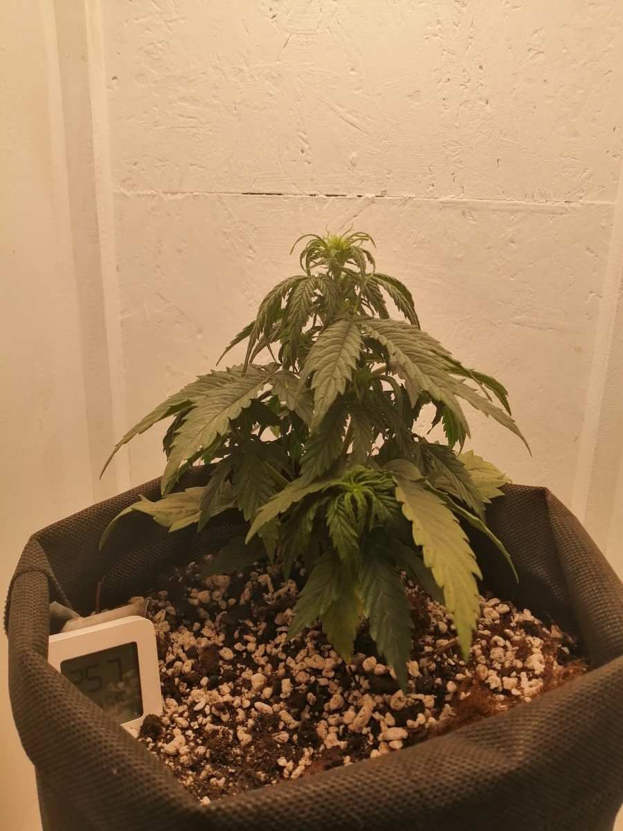 - Общие впечатленияХорошо растет и кушает, было пару очень сильных и критичных стрессов (сам виноват), но ничего, растиха выжила и порадовала качественным смолистым урожаем, правда не таким большим, опять же из-за стресса, харвест делал на 60ый день от каски.