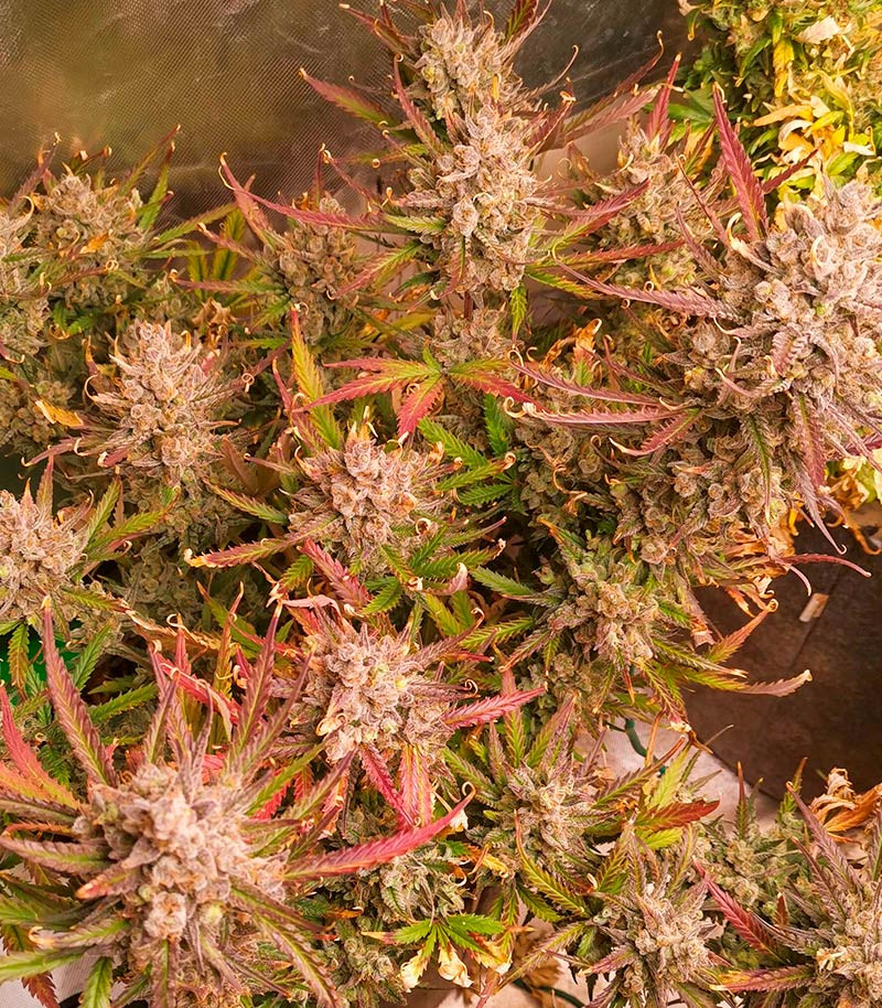 Феминизированный автоцветущий сорт конопли Crime Caramel 2 Auto демонстрирует удивительную легкость в уходе. Он без проблем приспосабливается к уличным условиям, тепличному климату или к грову в тесном партизанском гроубоксе. Быстро проходя вегетативный этап, компактные растения без промедлений переключаются на формирование завязей, а затем и соцветий, по всей верхней половине куста, заканчивая полный цикл уже на 7-8-й неделе от высадки семян.