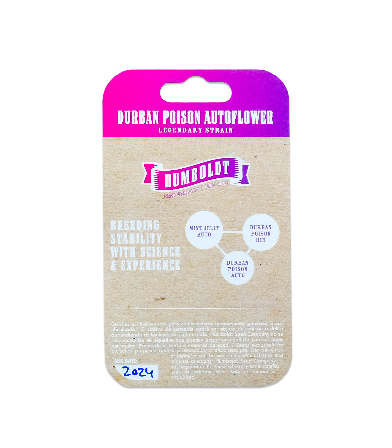 Humboldt Seed Company – это один из ведущих производителей семян конопли на всем Американском континенте. Будучи настоящими фанатами своего дела, эти ребята не устают баловать публику экстравагантными новинками. Так и в этот раз их автоцветущая версия легендарного сорта Durban Poison заставила многих гроверов пересмотреть свои взгляды на классическую канна-генетику.