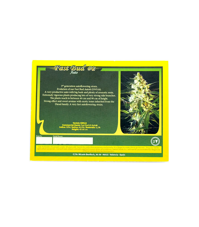 Семена сорта Fast Bud #2 Auto fem (Sweet Seeds) Испания, Феминизированные, Автоцветущие, ТГК-17