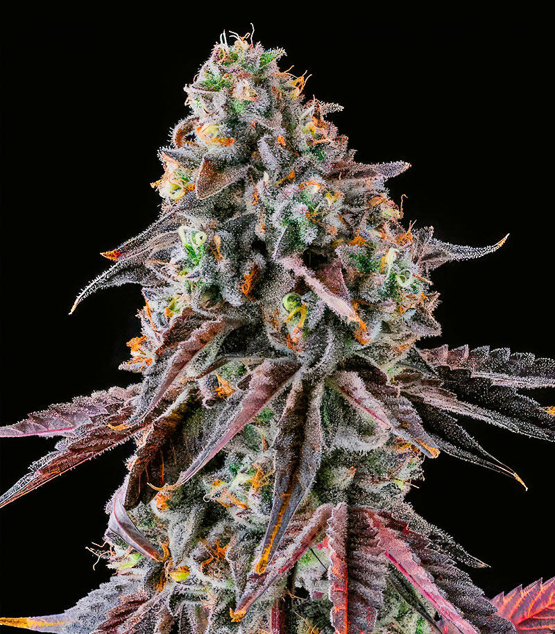 Fruit Riot – это яркий гибрид со вкусом летнего безумия. В его аромате сплелись клубника, виноград, апельсиновый крем и легкий бензиновый штрих. Плотные фиолетово-розовые шишки утопают в смоле, а эффект сочетает бодрость, вдохновение и мягкое уютное расслабление.