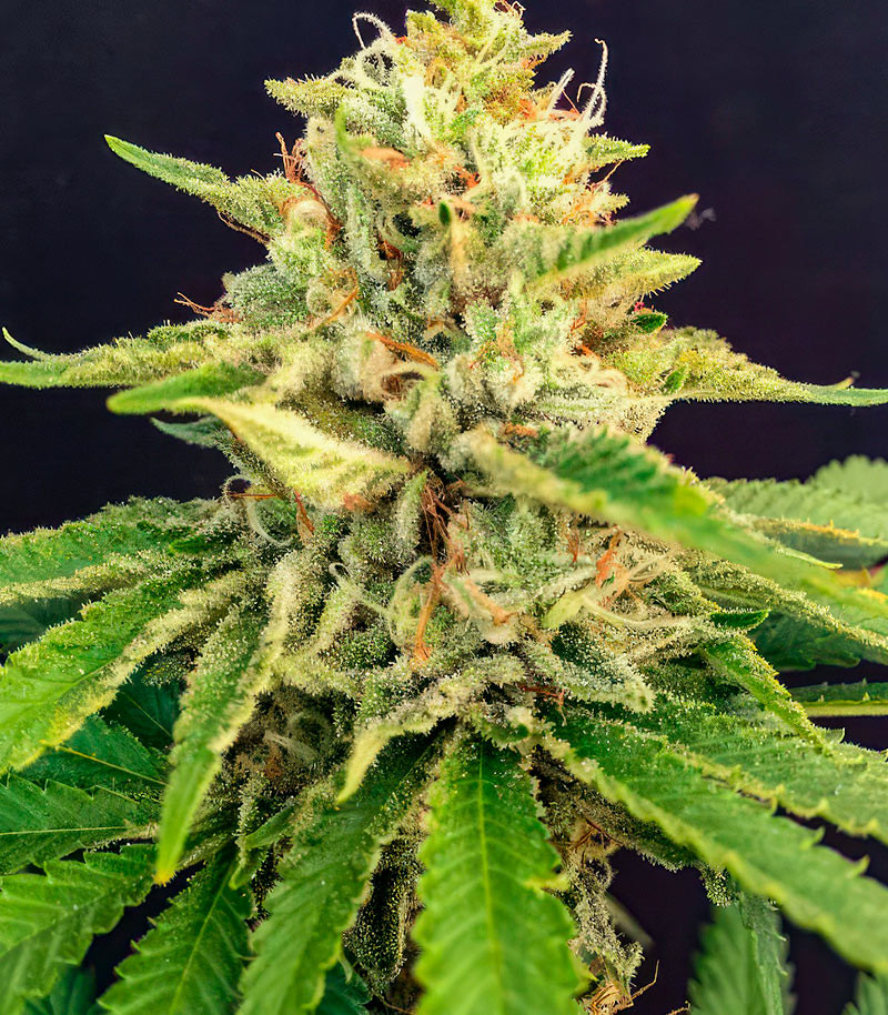 Triangle Kush, отвечающий за плотные смолистые шишки и стойкость растения.