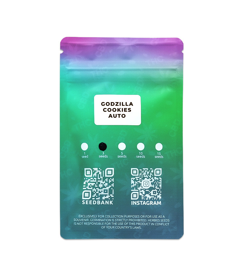 Семена сорта Godzilla Cookies Auto fem (Herbies Seeds) Испания, Феминизированные, Автоцветущие, ТГК-27