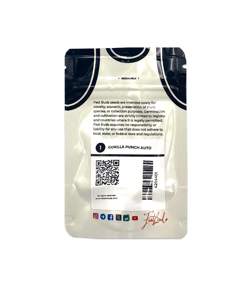 Семена сорта Gorilla Punch Auto fem (FastBuds) США, Феминизированные, Автоцветущие, ТГК-26