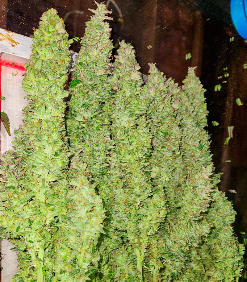 После старта формирования бутонов желательно хотя бы раз в две недели подкармливать растения удобрениями для цветения. Также ключом к быстрому созреванию урожая выступает хорошее освещение. При продолжительности светового дня в 18-20 часов полное созревание наступает на 8-9 неделе цикла. В открытом грунте может потребоваться несколько дополнительных недель, чтобы трихомы достигли оптимального состояния для сбора урожая. Но не стоит переживать: крепкие растения обладают исключительной устойчивостью к вредителям, плесени и температурным стрессам, так что серьезных проблем не должно возникнуть даже с учетом нестабильной погоды умеренного климатического пояса.