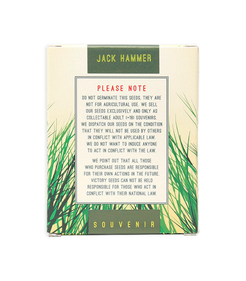 Сорт конопли Jack Hammer от Victory Seeds был назван в честь знаменитого активиста Джека Херера, выступавшего за легализацию марихуаны, а также автора, пожалуй, самой подробной и содержательной книге о каннабисе – «The Emperor Wears No Clothes». Растишка имеет в своем зале славы множество различных наград, которые она получала на конопляном фестивале Cannabis Cup. Она утвердила собой начало новой генетической линии, прозванной семейством Джека.