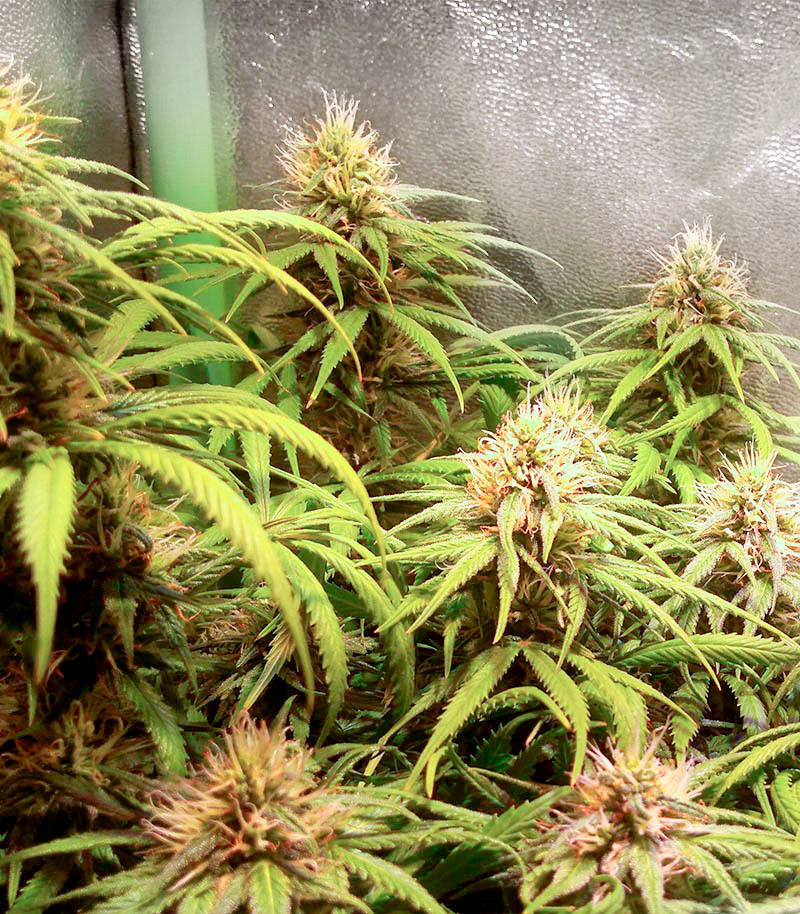 Для высадки в грунт понадобится горшок объемом 10-20 л. Температурный режим и влажность можно поддерживать в любом благоприятном для конопли диапазоне. Лампы ДНаТ или LED станут лучшим вариантом для освещения. Их мощность должна быть не менее 250 Вт. На вегетации растение следует держать 4-5 недель.