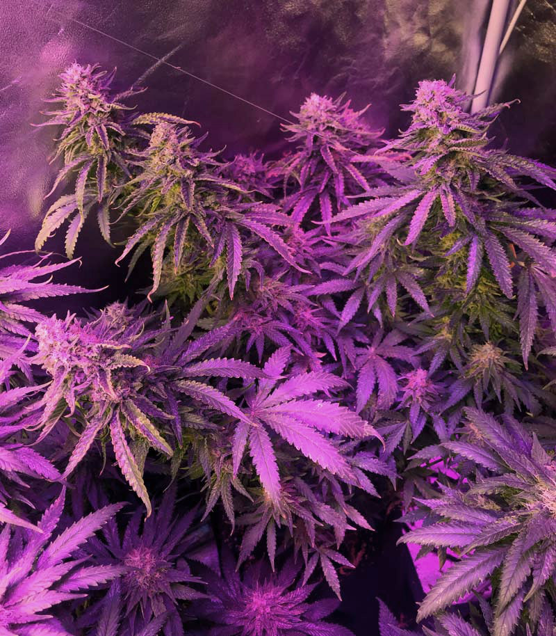 Если климатические условия не позволяют провести своевременный харвест, лучше не рисковать и сразу высаживать коноплю в гроутент. В индоре кусты обычно вырастают до 1,2-1,5 м в высоту. Следует учитывать, что фиолетовые соцветия источают сильный аромат диких ягод и грецкого ореха. Поэтому лучше озаботиться установкой угольного фильтра. Растение имеет иммунитет к серой гнили, не боится плесени. Но все же стоит позаботиться о своевременном проветривании бокса.