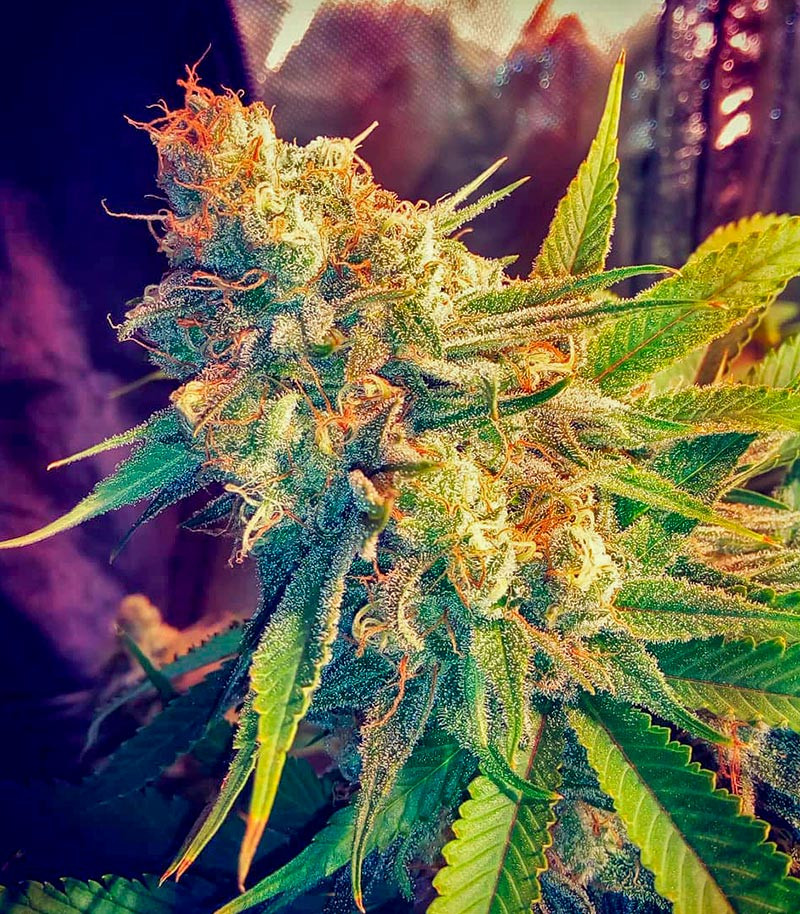 глубокий пурпурный окрас шишек с синим отливом гипнотизирует своими красками и добавляет марихуане 10 баллов к эстетичности.