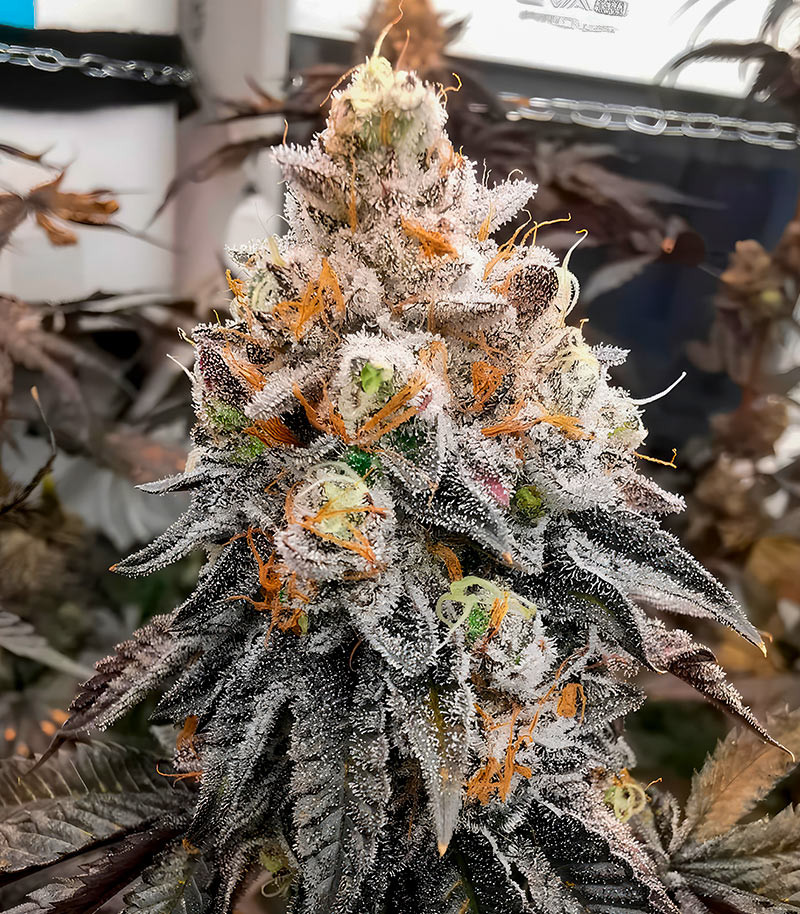 Каннабис Polar Gelato неплохо чувствует себя в любом типе почвы или в гидропонной системе. Фаза цветения проходит стремительно, и спустя 58-63 дня от сокращения светового периода блестящий от громадного количества смолы урожай достигает своего пика зрелости. Как и у большинства современных американских гибридов, его шишки не слишком крупные и округлые с набухшими чашелистиками. Зато, если похлопотать над плантацией на этапе вегетации, их масса может достигать 1,4-1,6 кг с уличного куста и доходить до 600 г с квадрата рабочей площади при домашнем выращивании.