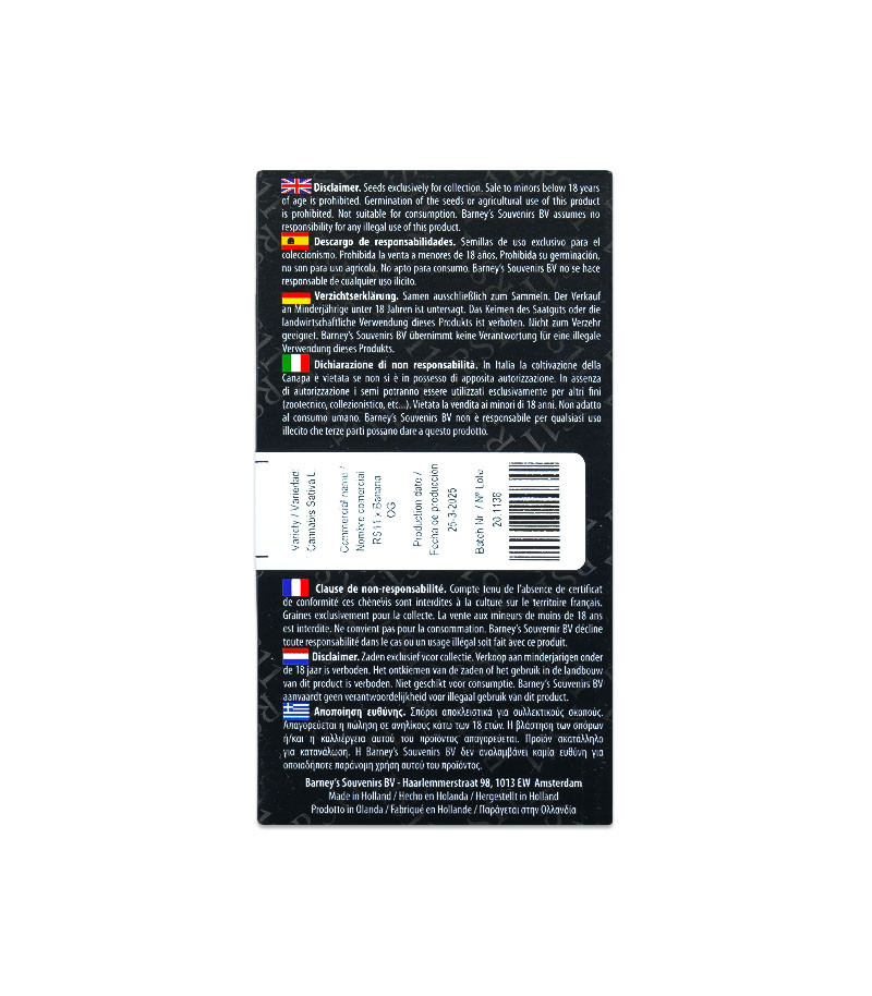 Семена сорта RS11 x Banana OG fem (Barney's Farm) Нидерланды, Феминизированные, Фотопериодные, ТГК-32
