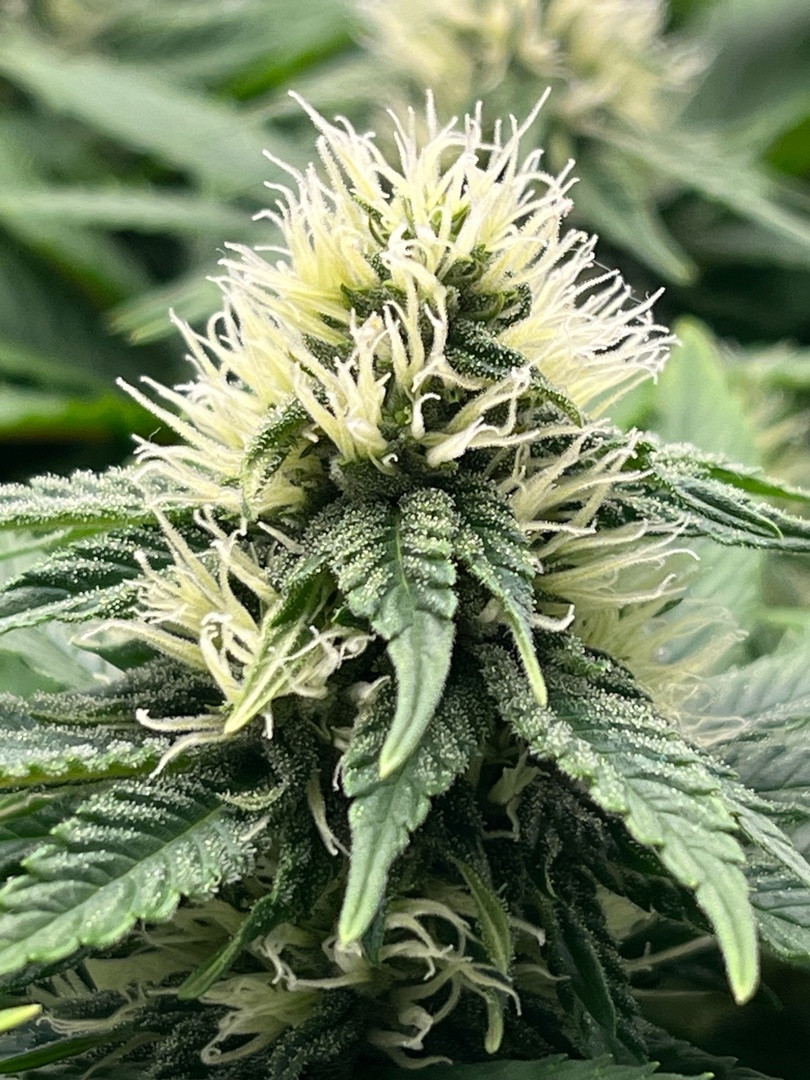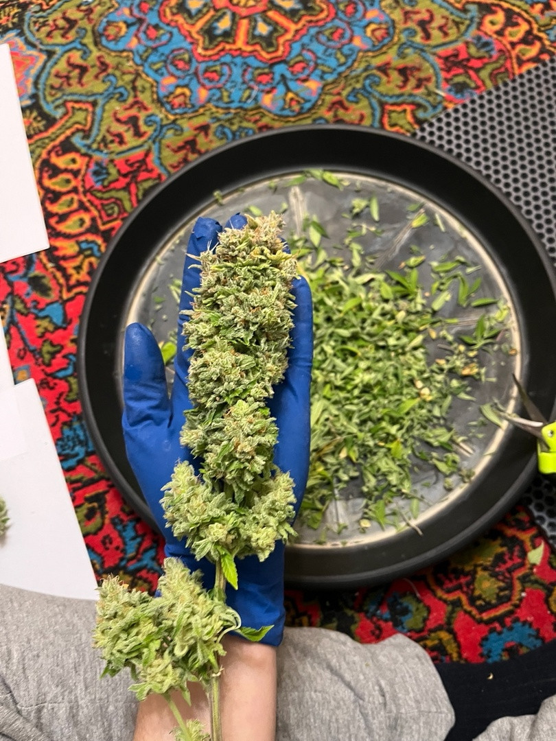 Кисло-сладкий аромат настоящей свежей черники заполонил все пространство. Смола так и сочилась, а куст сверкал в лучах света словно покрытый кристаллами сваровски. В 15 недель был харвест, и это было особое удовольствие срезать и маникюрить ароматные ветки. Смолы много, сложно, долго, но все равно это особое удовольствие.