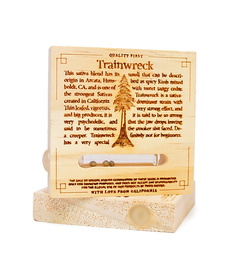 Сорт конопли Trainwreck – это невероятно мощный гигант, который просто поразит любителей аутдорного гровинга. Он был получен путем скрещивания секретных сатив, которые были выведены в округе Гумбольдт, Калифорния. Соотношение индики и сативы 40/60 наделило растение гибридными свойствами: оно имеет сативный фенотип, аромат классической индики, а воздействие носит волновой характер. Одним словом, это настоящий Грааль для любителей необычных сортов.