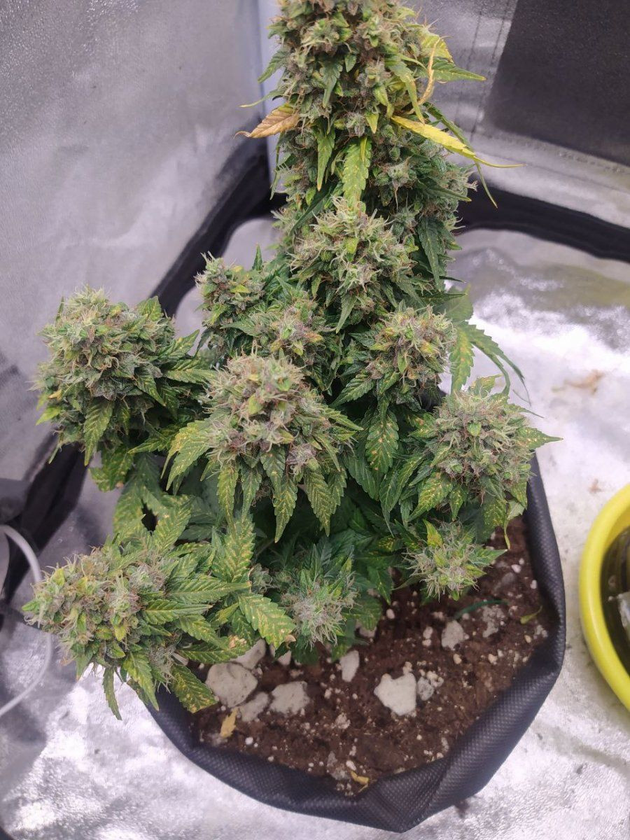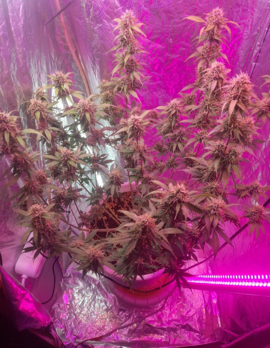 - Общие впечатленияСупер! Растил в почве в большом горшке без каких-либо тренировок под ярким светом ЛЭД ДНАТ. 188 грамм с 1 растения – это отличный результат, и всего за 10,5 недель грова, причем, не даже не без проблем. Сперва все шло гладко, но потом были и передозировка удобрениями, и световой ожог – не смертельные, но все же. И все равно результат получился высоким. Я уже растила эти семки ранее, так вот 188 грамм – это почти вдвое больше, чем в предыдущий заход.