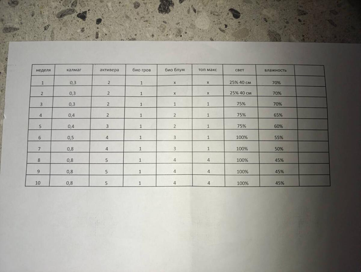 - Урожай в помещении 450 - 600 г/м²