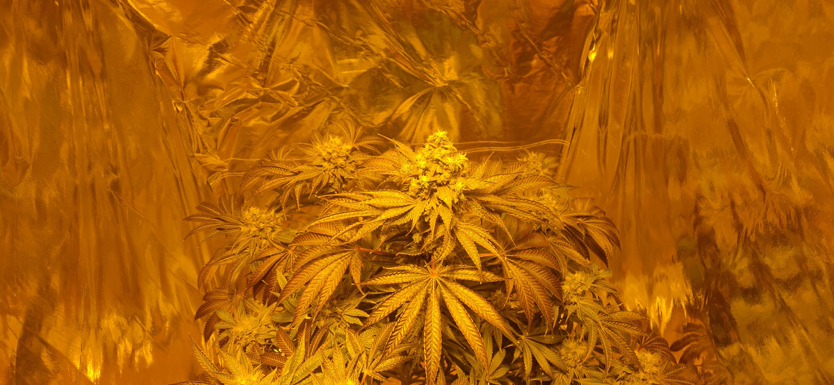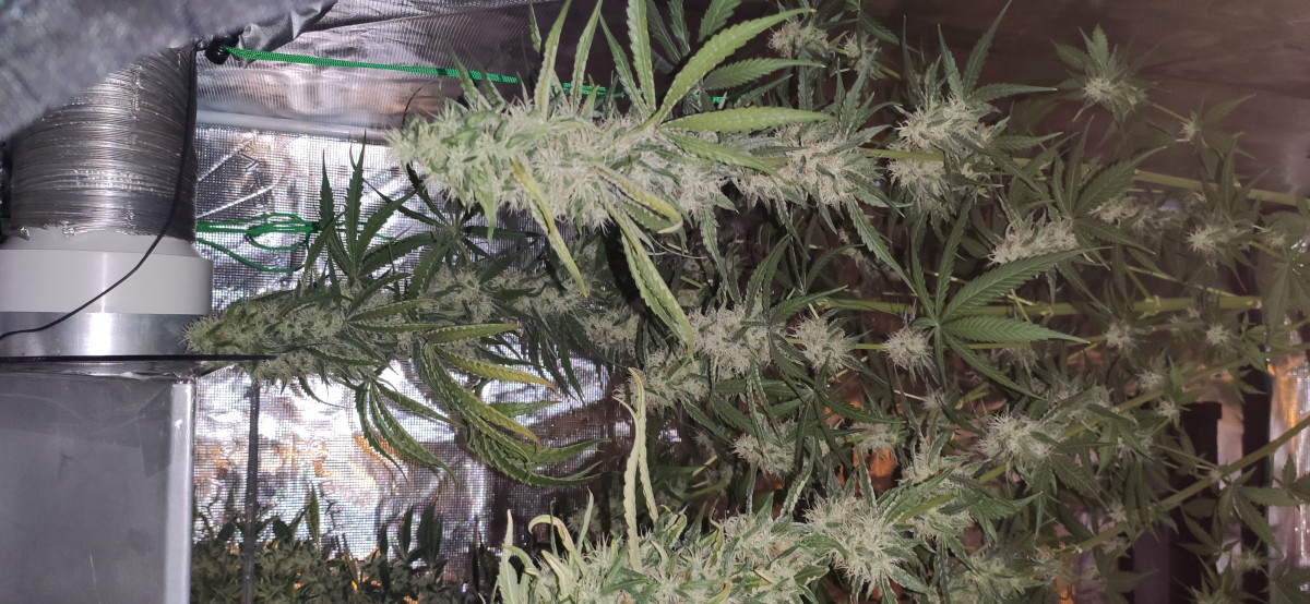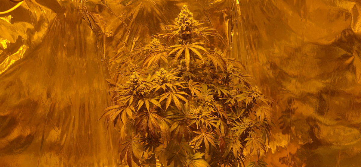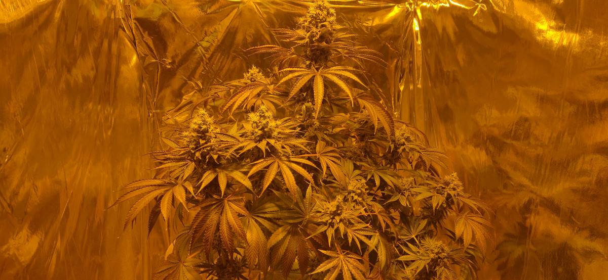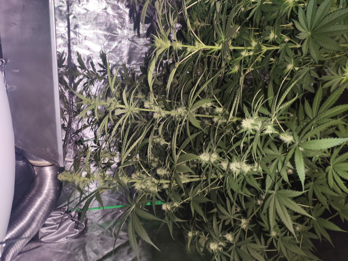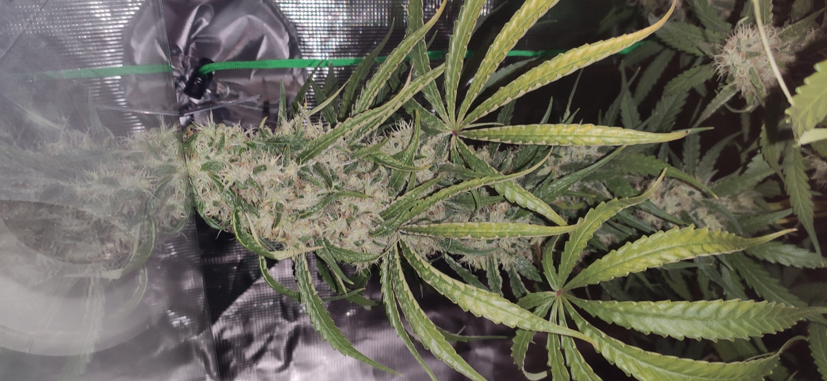 Куст получился 130см в 20 литровом горшке в грунте. Освещение ДНаТ 400- на веге и ДНаТ 600 - на цветении. Размеры палатки 100*100*180.